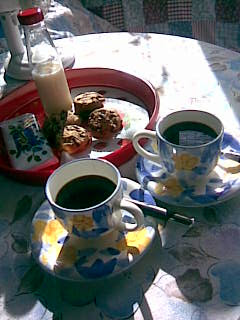 Keräsin eilen takapihalta tuokkosen mustikoita ja leivoin niistä piirakan.